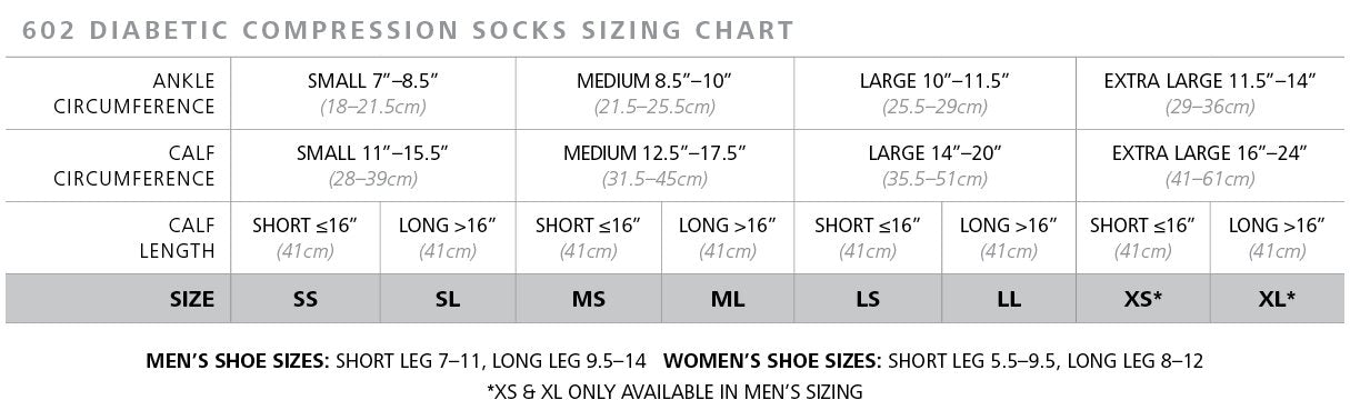 The Sigvaris 602 Diabetic Men's 18-25 mmHg Knee High Compression Socks specifically designed for the diabetic patient. Unlike most diabetic socks in the market, this product combines the features that help protect the diabetic foot while also delivering graduated compression. In a recent study, the use of SIGVARIS Diabetic Compression Socks was shown to reduce edema in patients with diabetes. These patients were 100% satisfied with the ease of care they received and with the overall comfort, and unanimously said they would recommend the use of the SIGVARIS Diabetic Compression Socks.